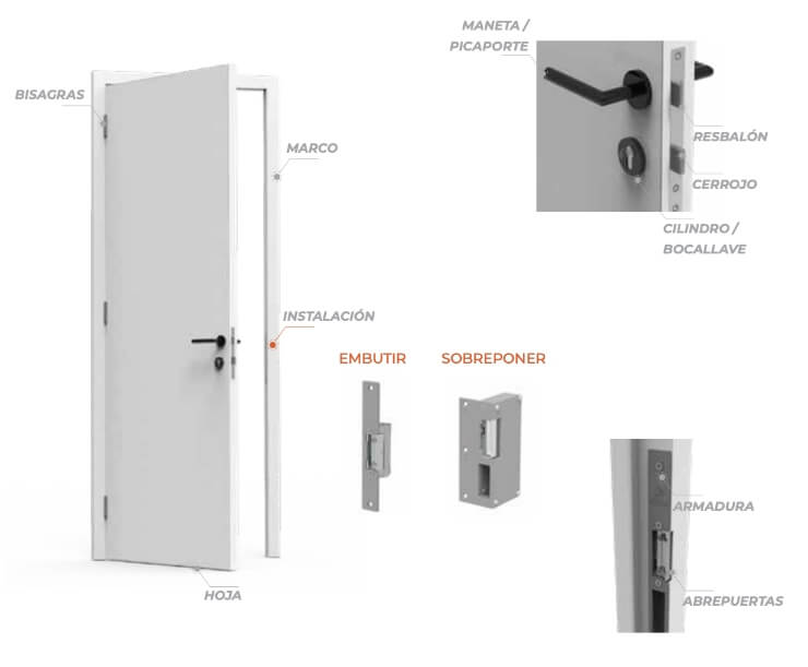 Se instala dentro del marco de la puerta y consta de un frontal y una caja de mecanismos.